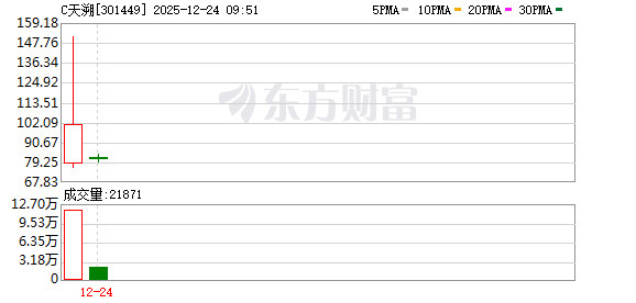 C天溯(301449)上市首日上涨174.48%,换手率达84.79%,成交额为10.19亿元。
